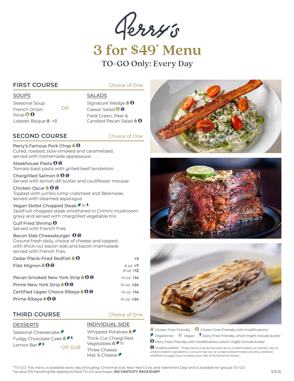 Enjoy our special 3 for $49 Menu available TO-GO Only daily (Including: Christmas Eve, New Year's Eve & Valentine's Day)