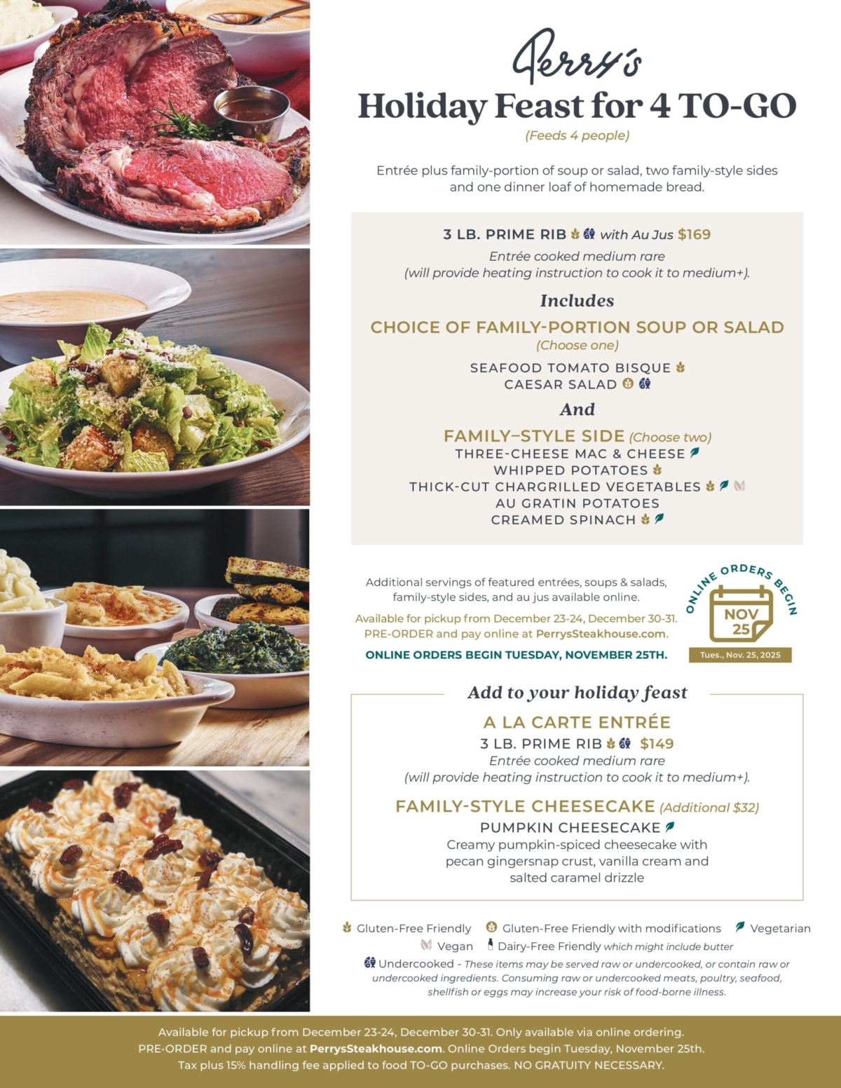 Available December 23 & 30 (Heat & Eat At Home) & December 24 & 31 (Cooked To Order And Ready To Serve) From 11 AM - 9:30 PM. Online Pre-Orders begin 11/25.